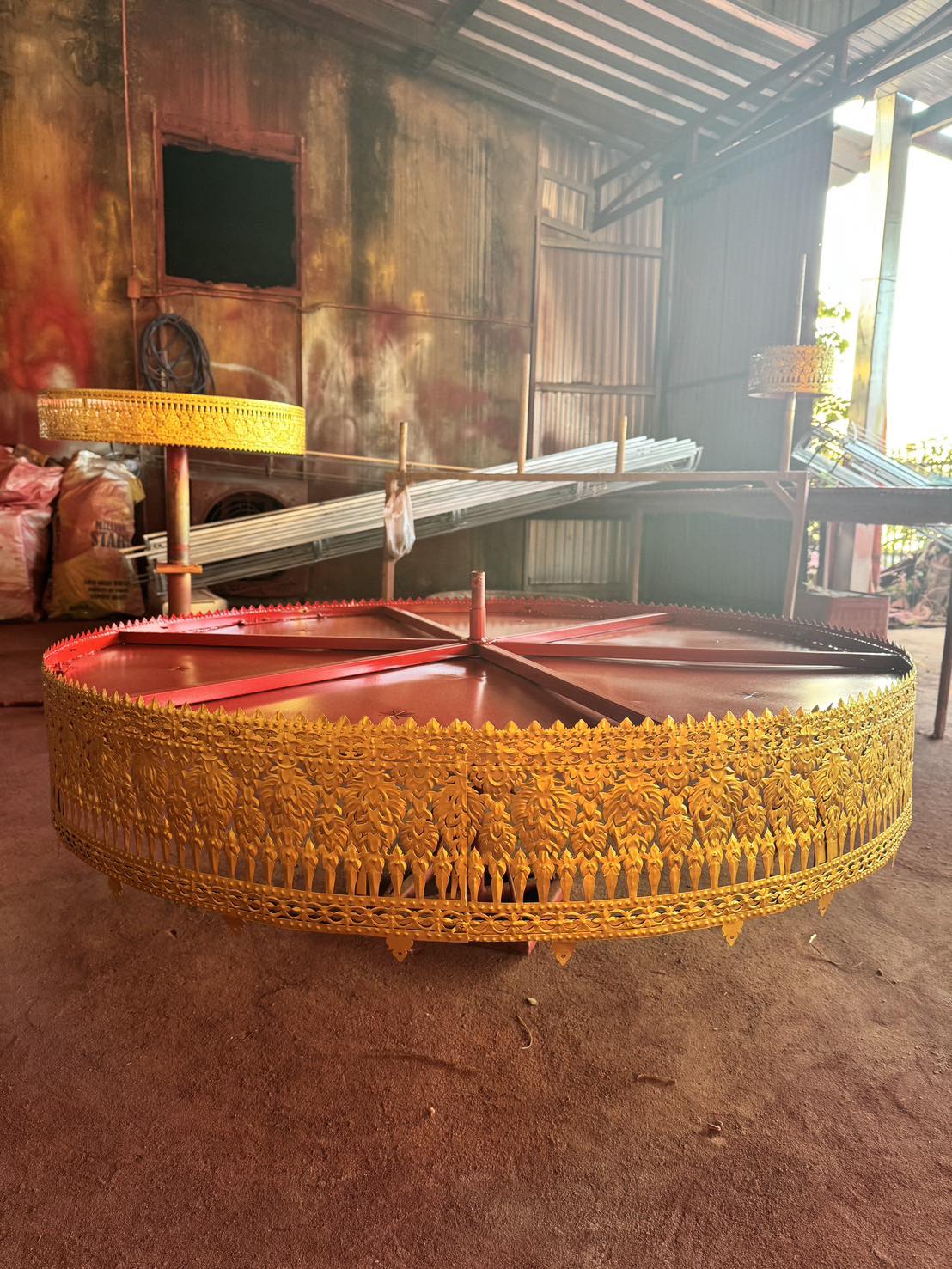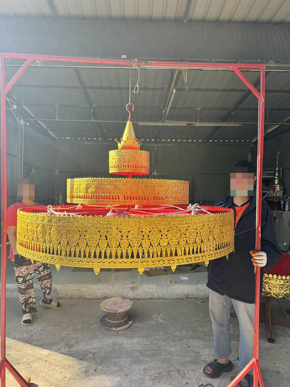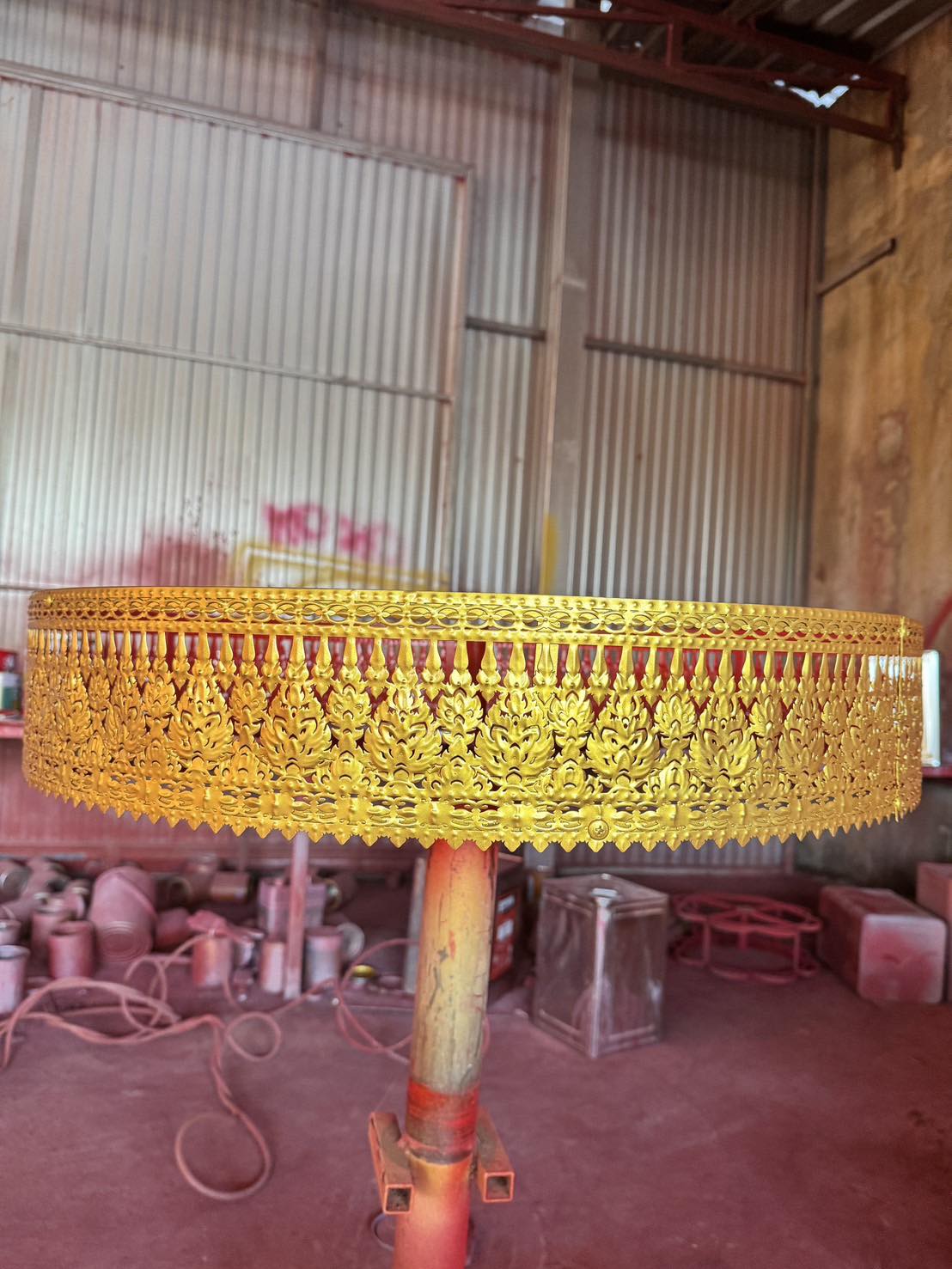 ฉัตรทองเหลืองฉลุสวยงาม 3 ชั้น พร้อมหลอดไฟ สำหรับแขวนบนเศียรพระ