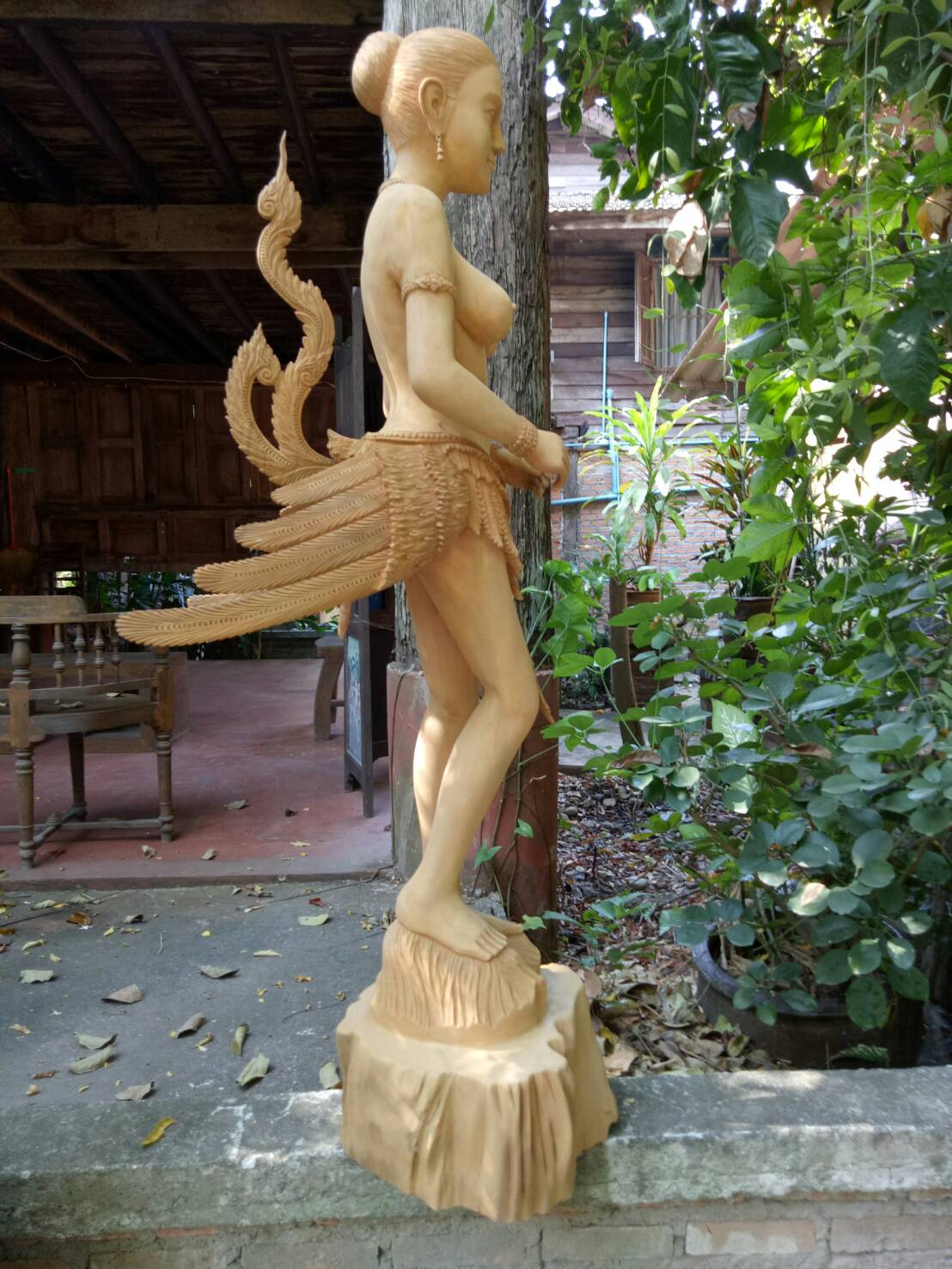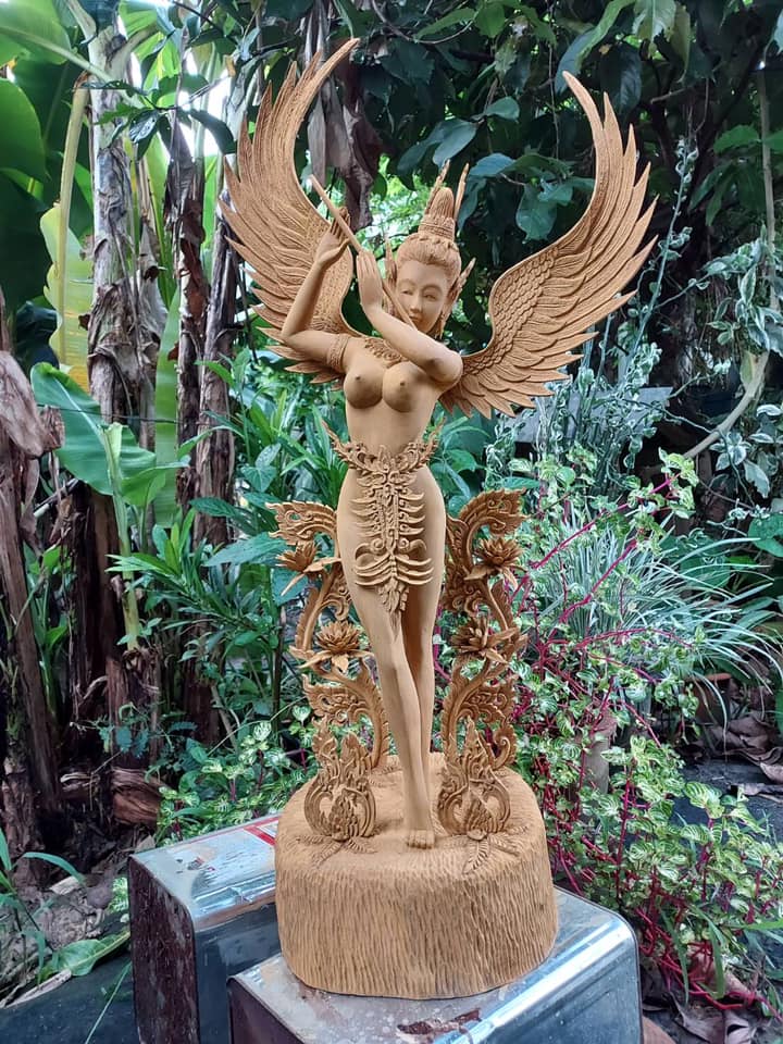 กินรีไม้สักแกะสลัก รับทำตามขนาด จัดส่งทั่วไทย