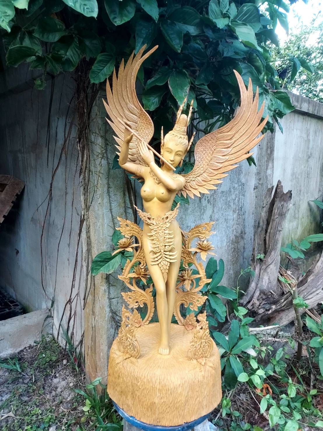 กินรีไม้สักแกะสลัก รับทำตามขนาด จัดส่งทั่วไทย